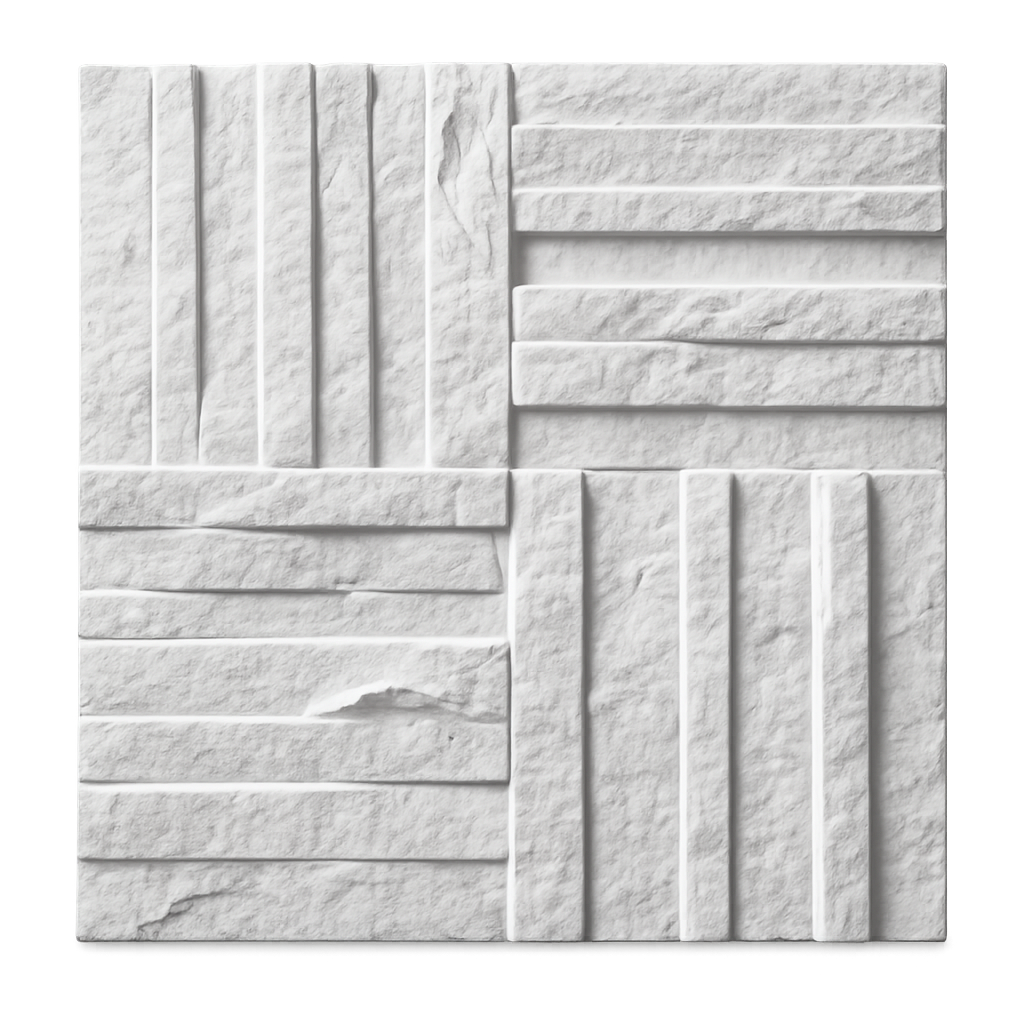 Placa 3D com sulcos profundos que imitam as fendas naturais de grandes rochas.