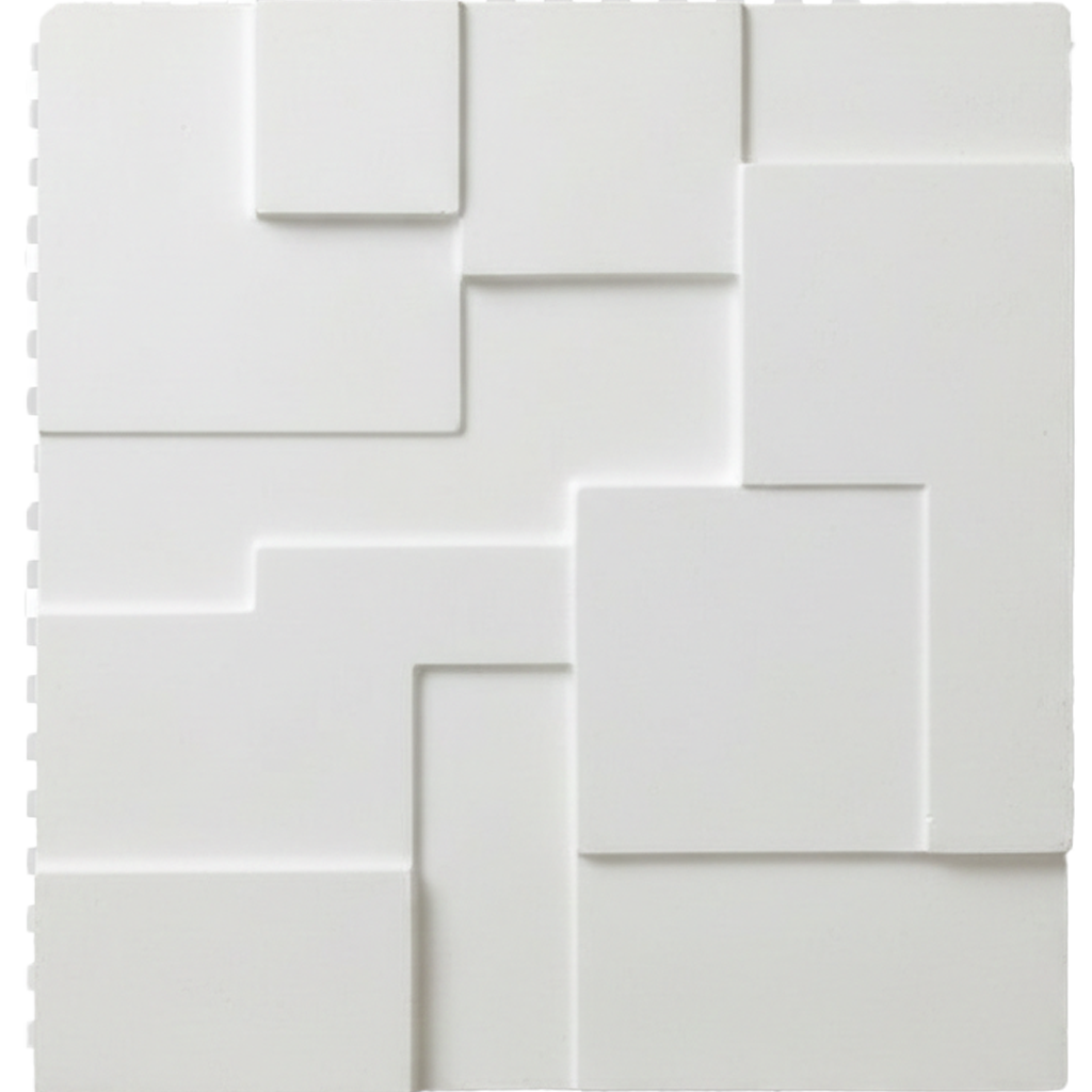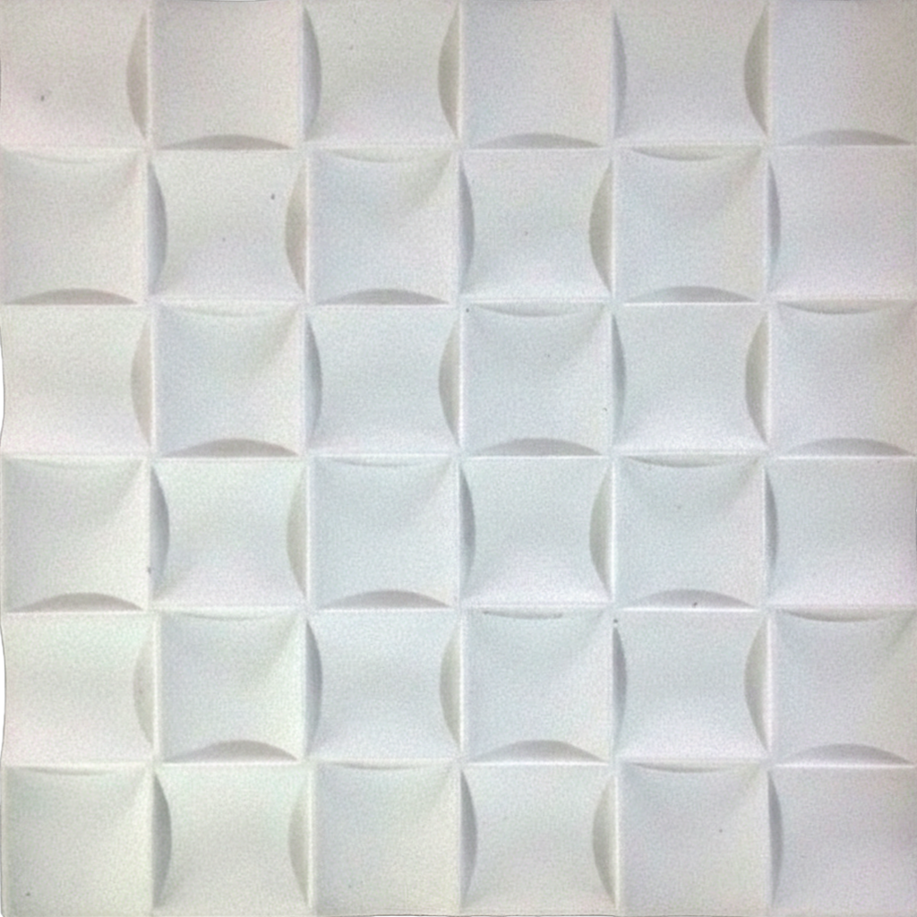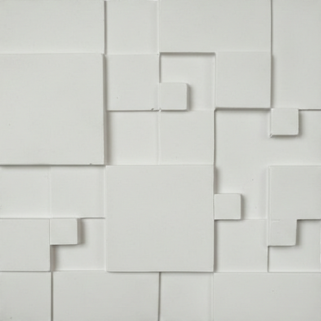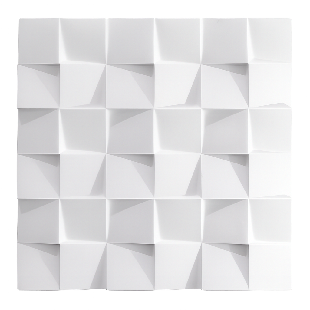 Placa 3D de gesso com relevos quadrados simétricos para projetos limpos e diretos.