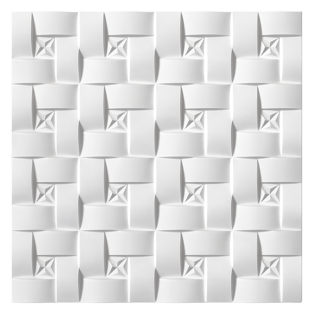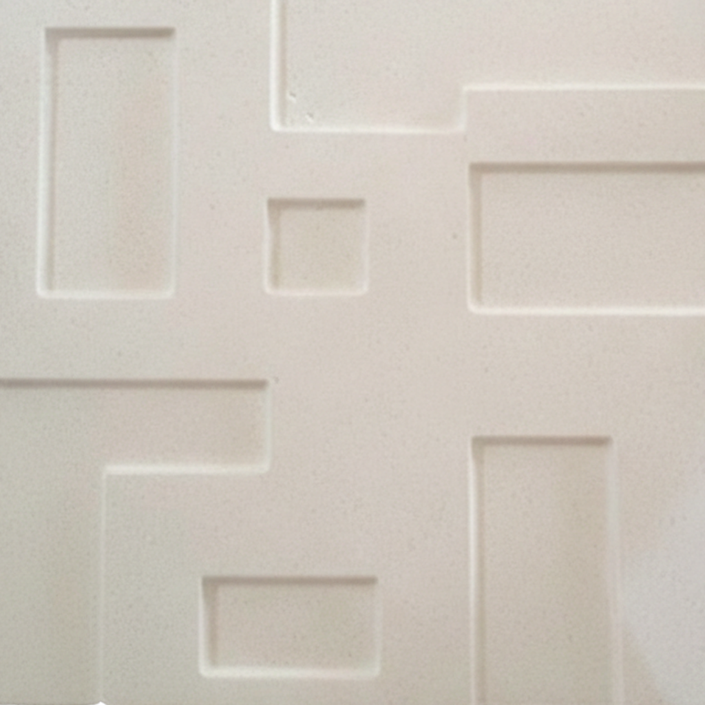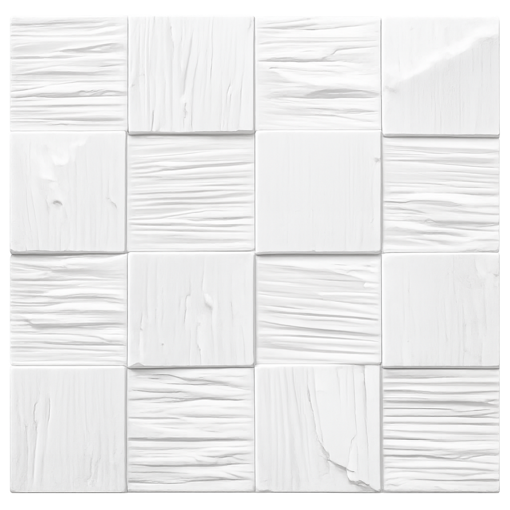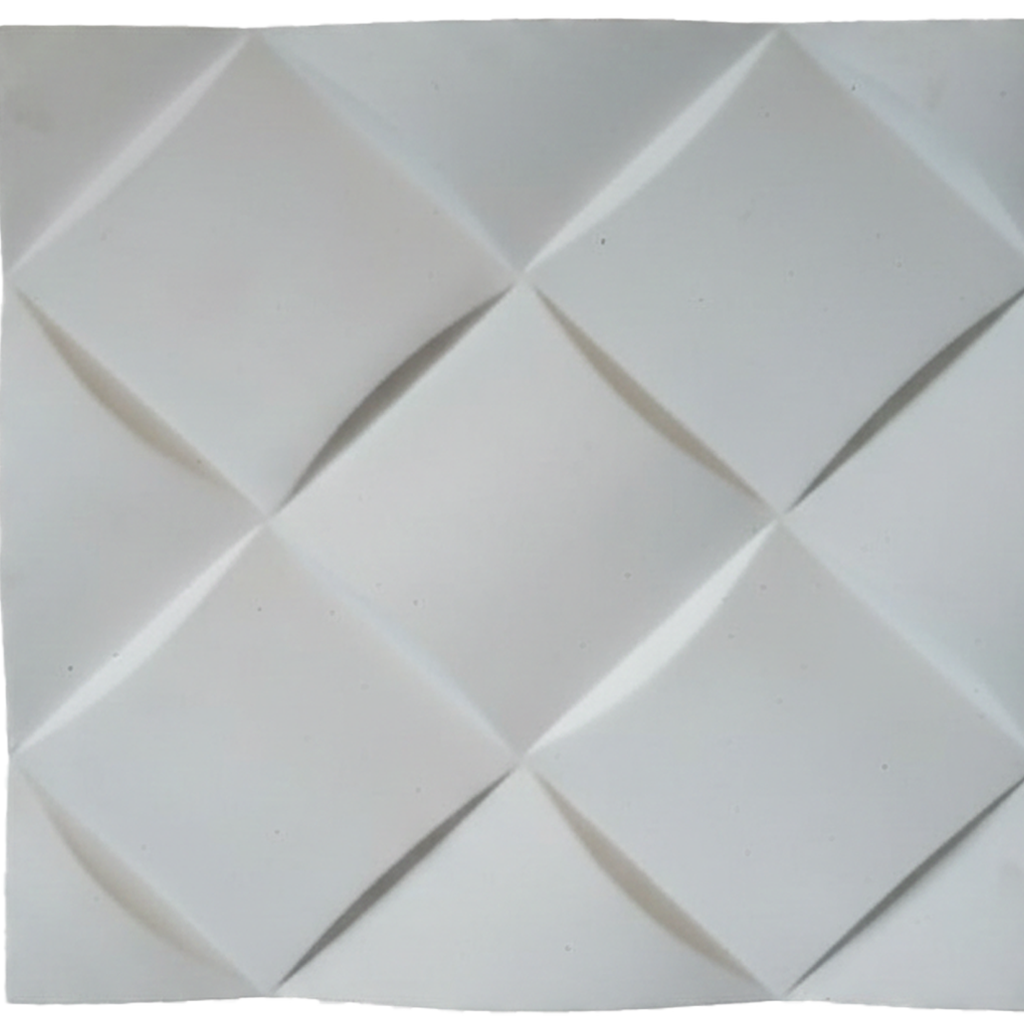 Placa 3D de gesso com relevos quadrados simétricos para projetos limpos e diretos.