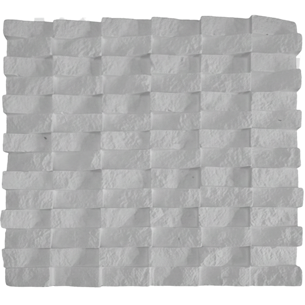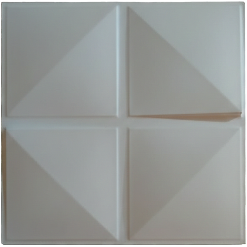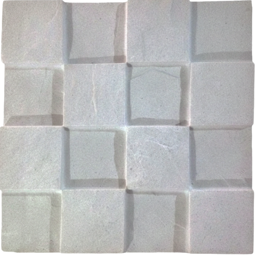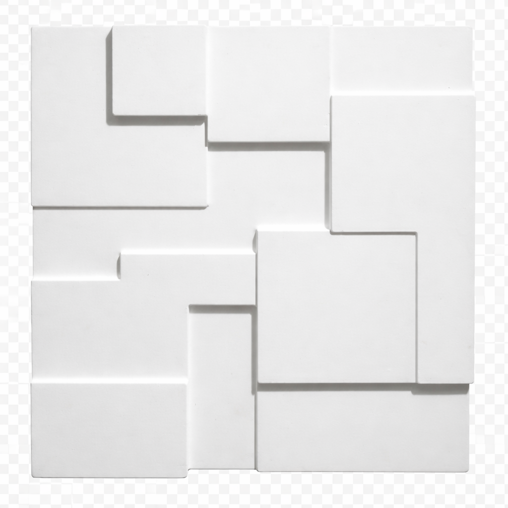 Placa 3D de gesso com relevos quadrados simétricos para projetos limpos e diretos.