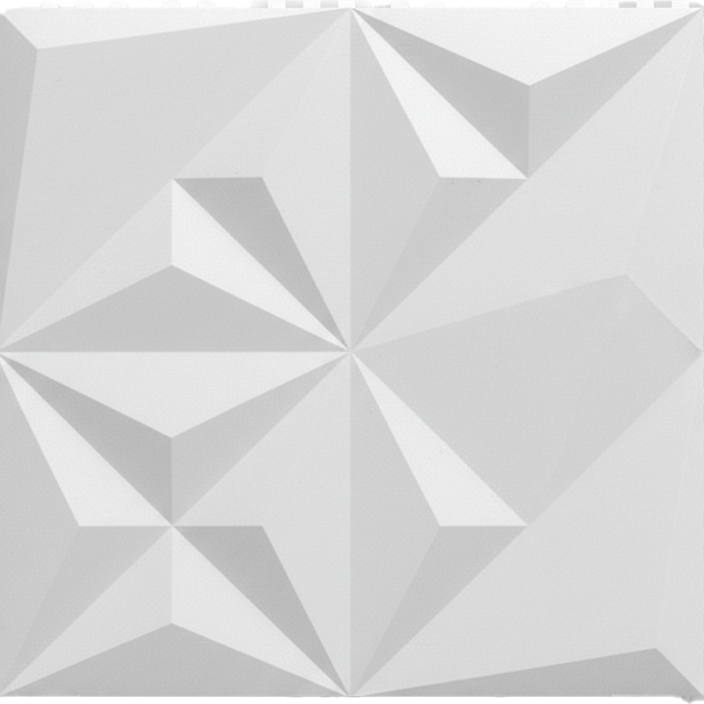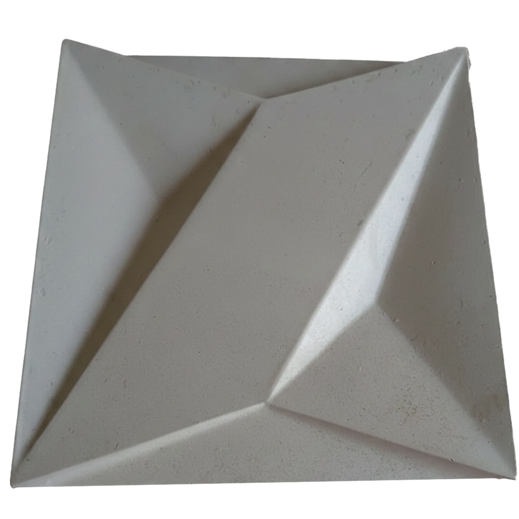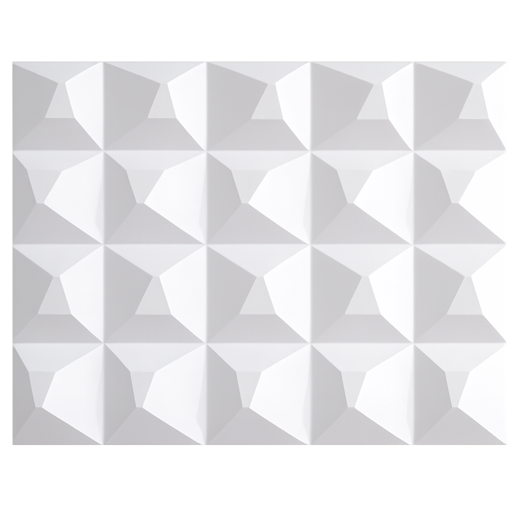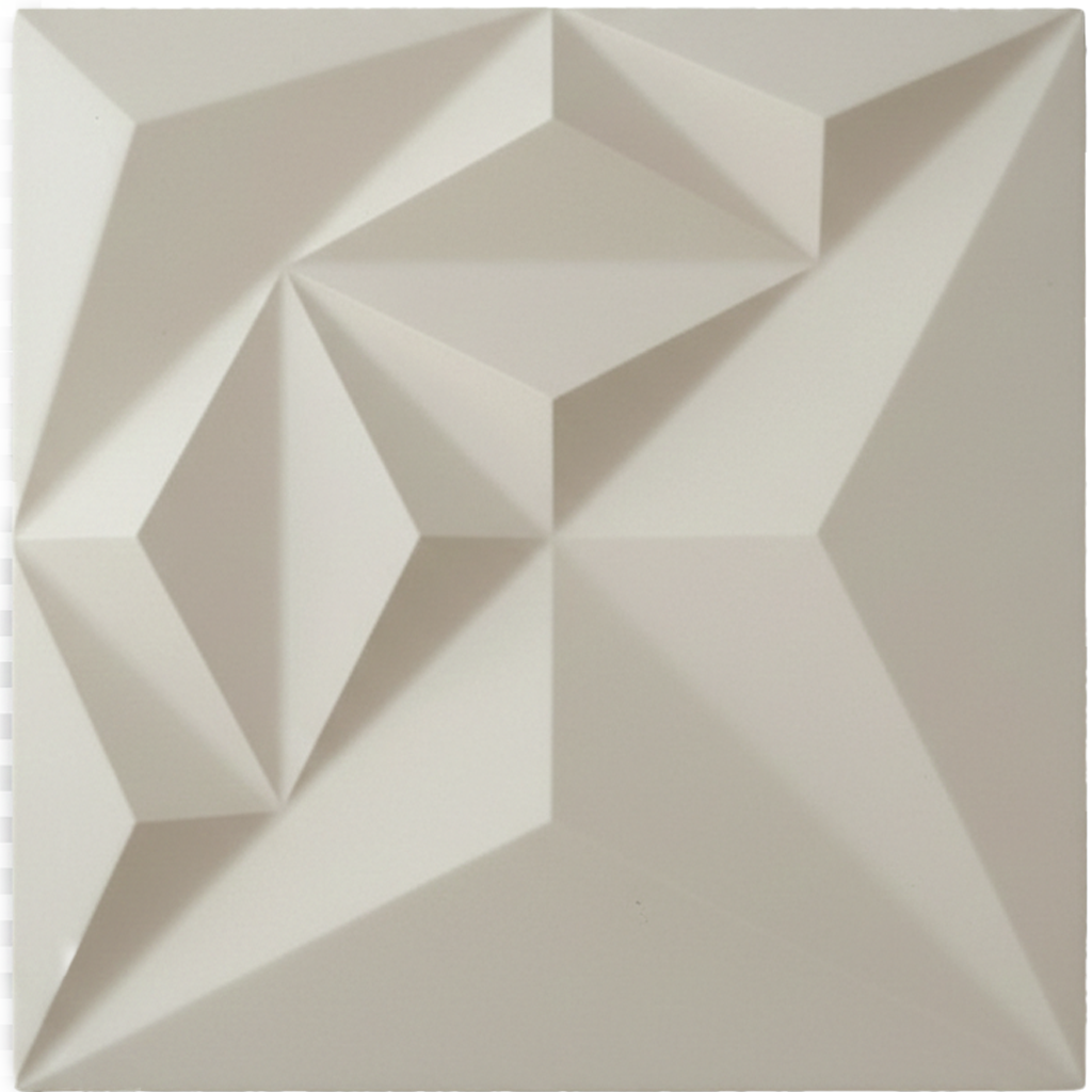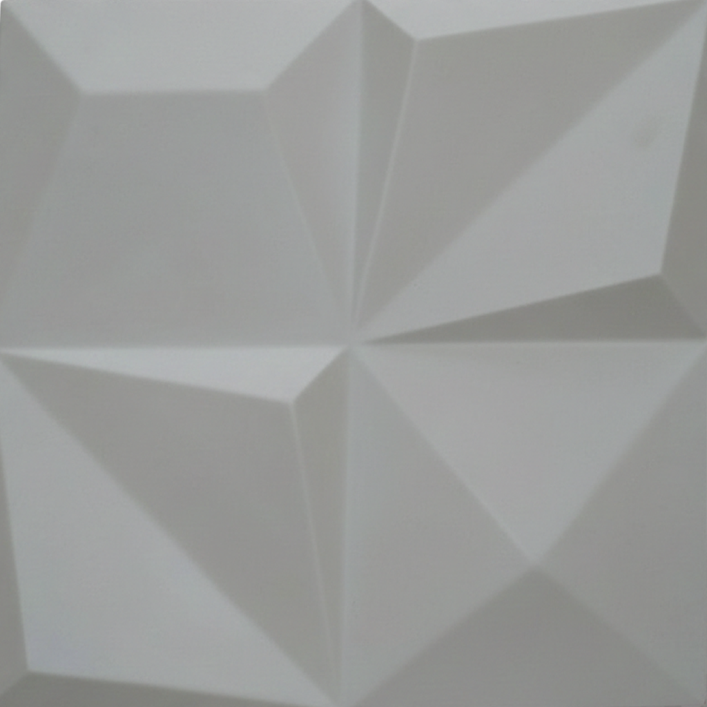 Múltiplas faces que criam profundidade e um visual tecnológico ao gesso 3D.