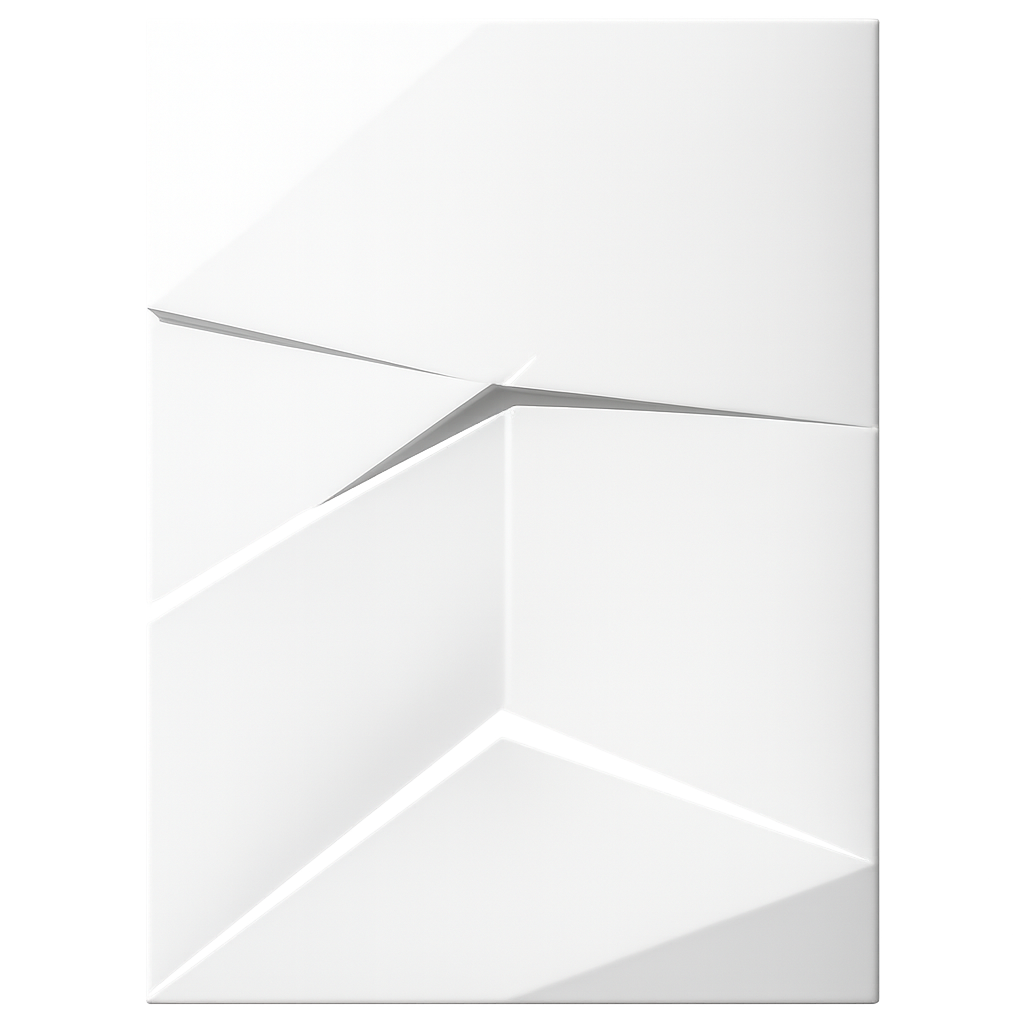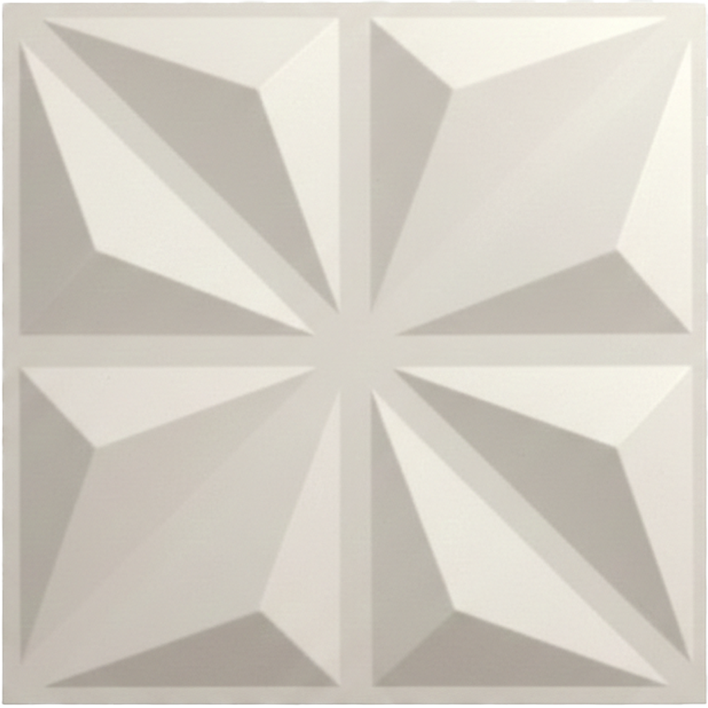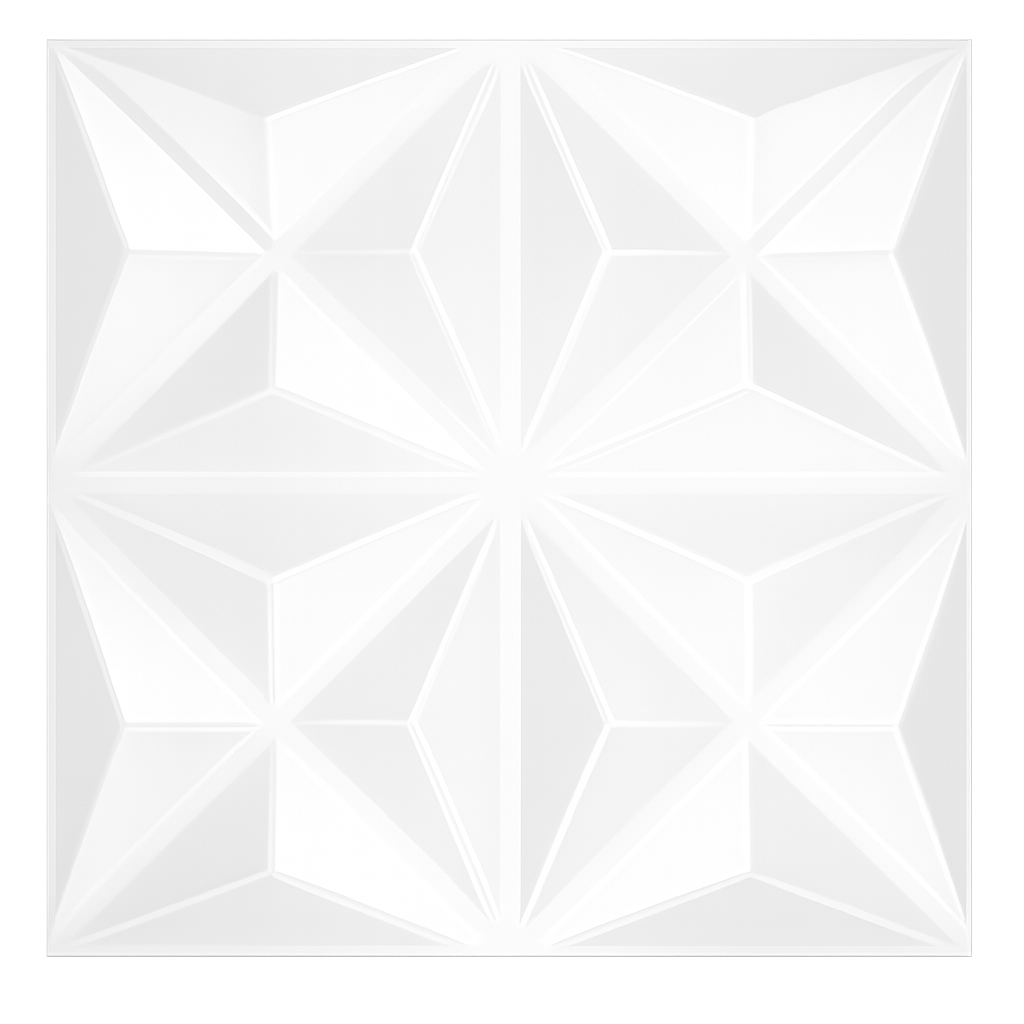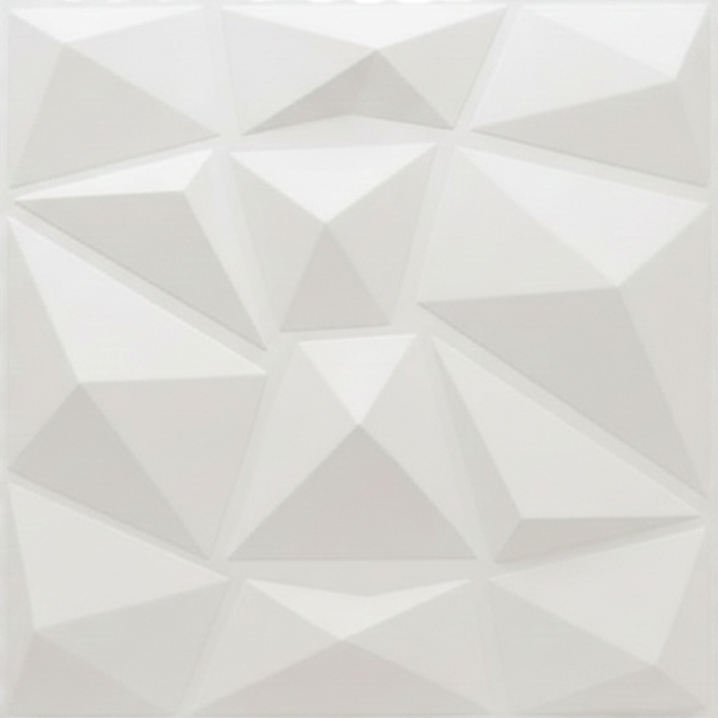 Múltiplas faces que criam profundidade e um visual tecnológico ao gesso 3D.