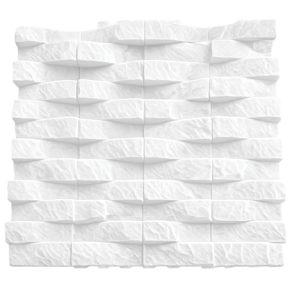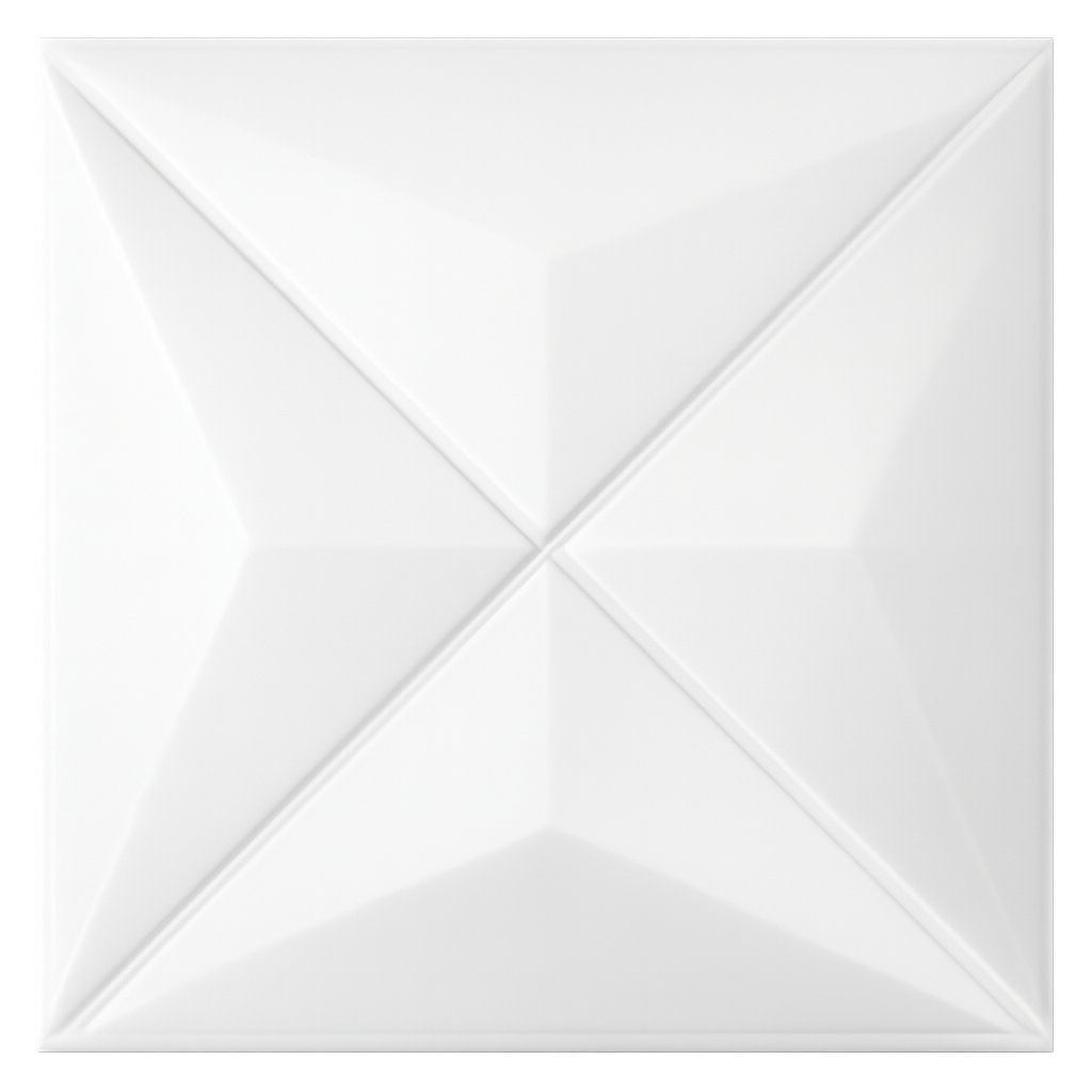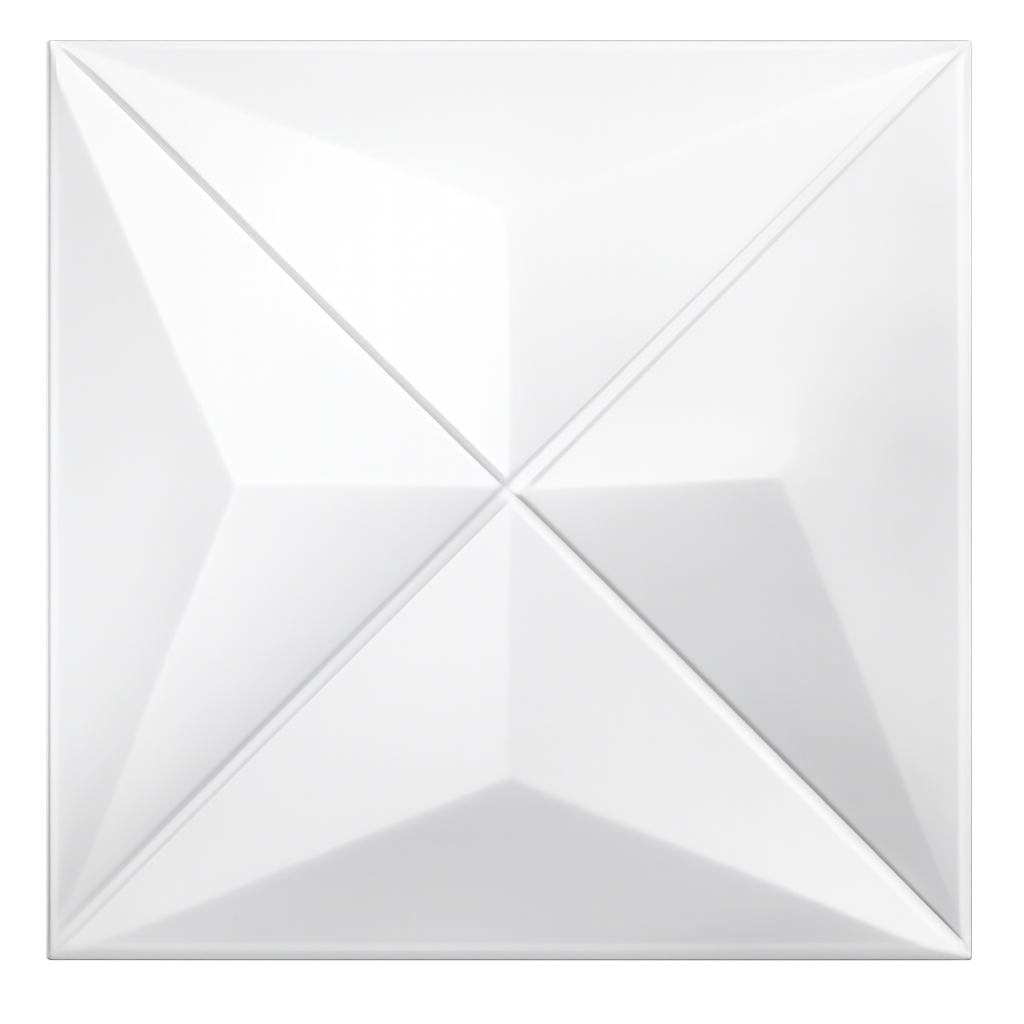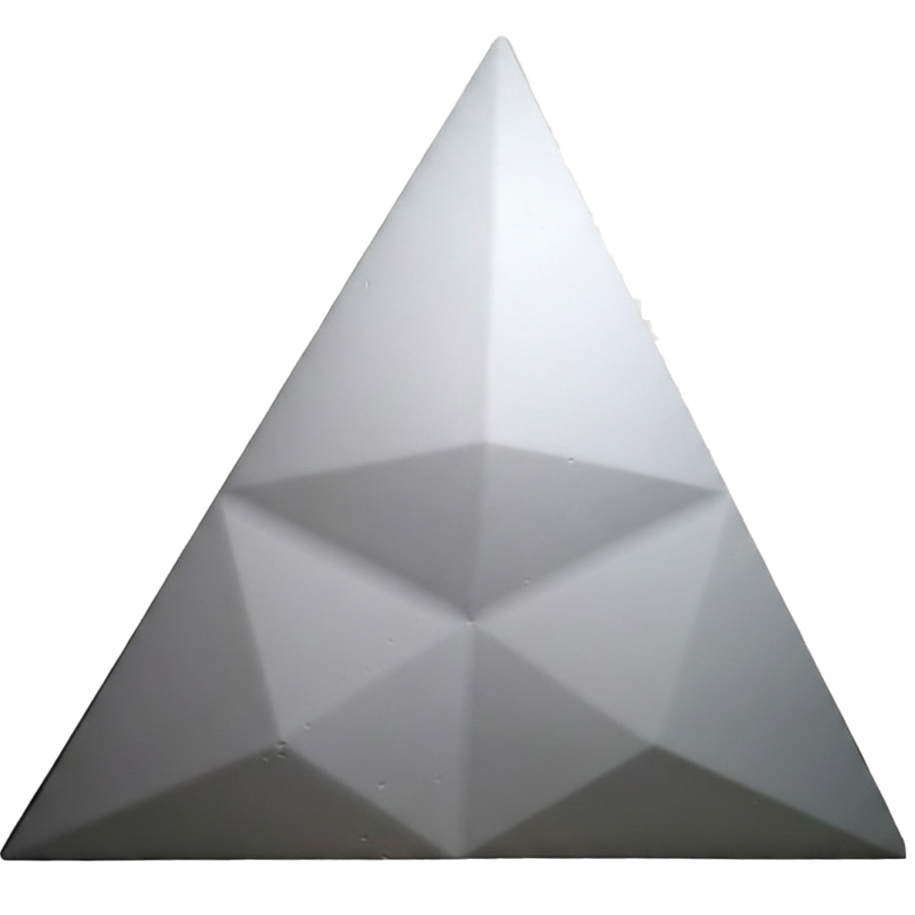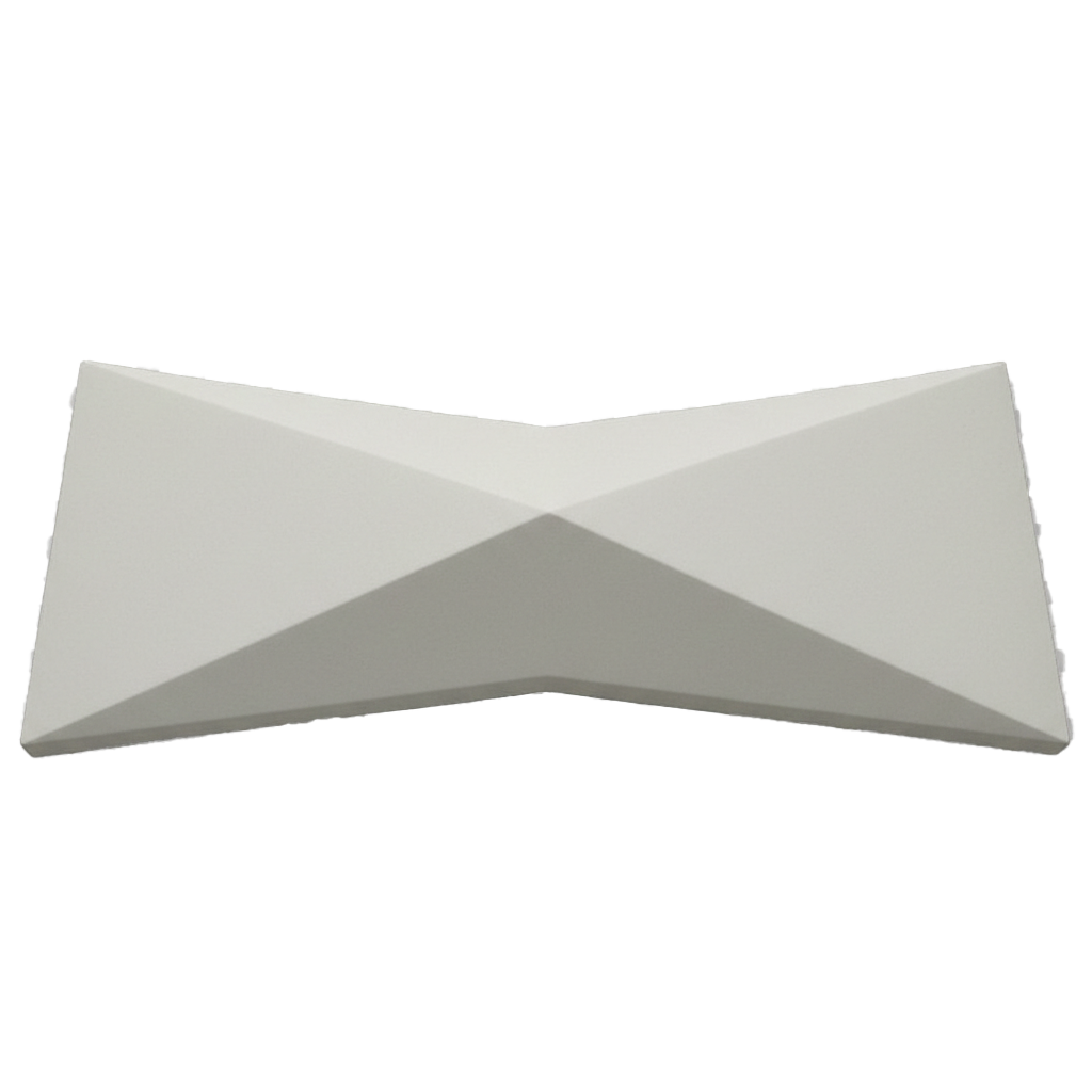 Múltiplas faces que criam profundidade e um visual tecnológico ao gesso 3D.