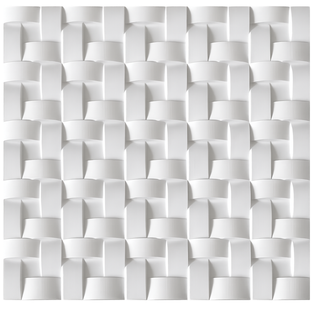 Textura delicada que simula o entrelaçado de tecidos nobres em gesso 3D.