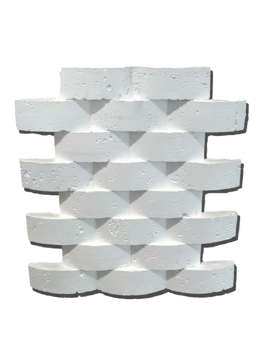 Pequenos blocos simétricos em gesso, ideal para um visual tecnológico e digital.