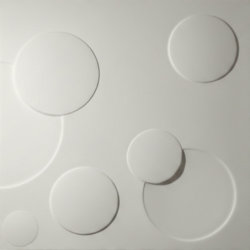 Relevos esféricos suaves que conferem delicadeza e sofisticação única ao gesso.